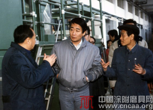 1987年12月河南省副省長劉源(中)來2#引進生產線參觀
