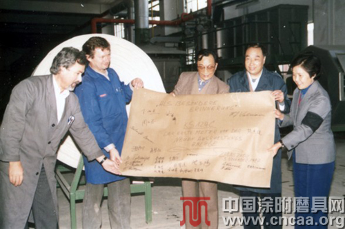 1984年2月1日對外經濟貿易部以(84)外經貿技字第54號文批復與德國弗郎茲公司簽訂的涂附磨縣生產線設備及技術協助合同(83BMSJ/200 l71'CD)生效。批文后,我們到國家計委催促批準可行性研究報告。