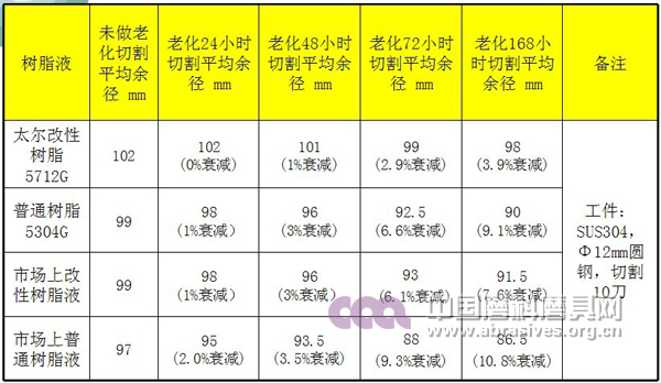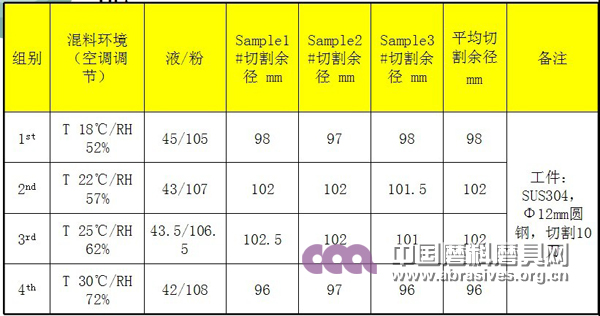 2).在其他條件一樣的情況下,樹脂液不同,砂輪片的耐老化性能會有較大差異;