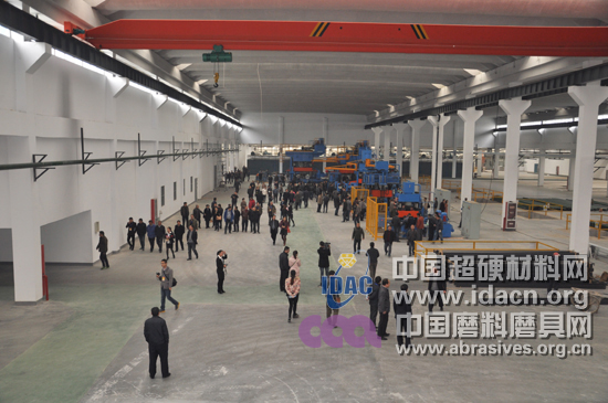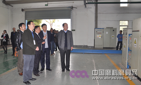 參觀完蘇砂老廠區后,上午10時,全體嘉賓來到位于新盛(泰州)磨料磨具新材料科技園的蘇砂新廠區。蘇北砂輪廠于2013年加入新盛集團,與邦富萊、蘇蒙強強聯合、優勢互補,并于當年總投資1.5億元籌建占地2.7萬平方米,年產中高檔陶瓷結合劑磨具15000噸的擁有現代化廠房和智能生產設備的新廠區。在新廠區參觀時,從原材料、輔料倉儲到結合劑配混制、成型料配混制、砂輪壓制成型、坯件烘干、燒成、外形加工、成品檢驗、包裝入庫的突破陳舊磨具制造觀念的全程自動化砂輪生產流水線讓參觀嘉賓無不感到驚嘆。