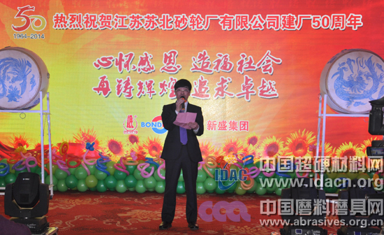 下午15時30分,江蘇蘇北砂輪廠有限公司建廠50周年慶典會議在姜堰世紀緣國際酒店隆重舉行。慶典會議由蘇砂總經理王林主持。