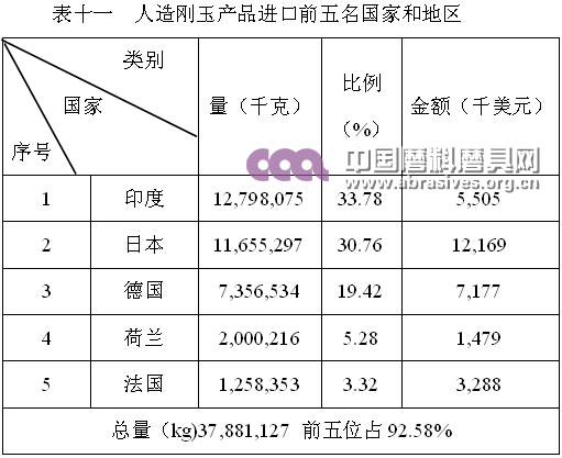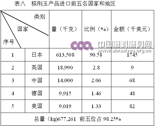 天然剛玉5.95萬噸,12,234千美元(1200萬美元),同比分別增長6.39和7.71;