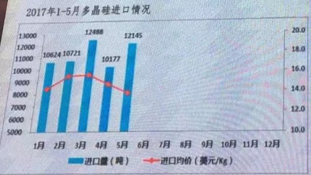 6、多晶硅每月進口量均超過1萬噸,月均進口量約為1.12萬噸。