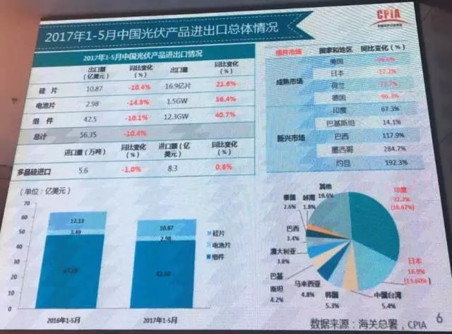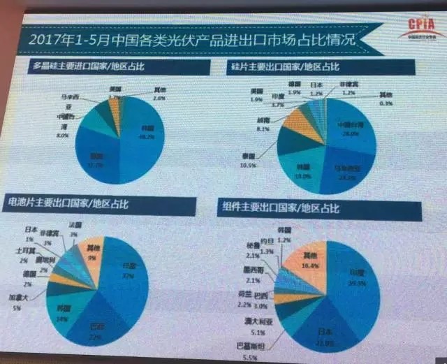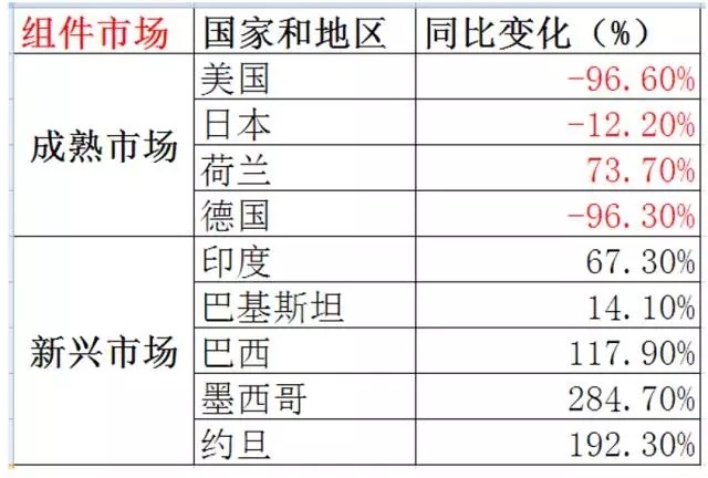 5、組件出口市場由歐美日成熟市場轉向新興市場的趨勢明顯,包括印度、巴西、巴基斯坦、墨西哥等;