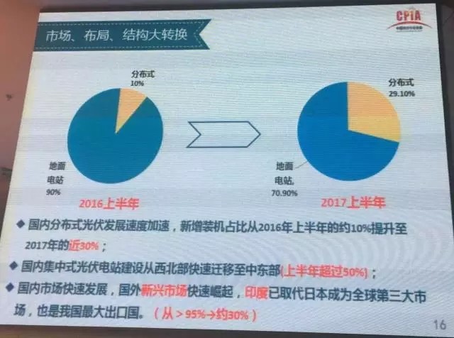 國內集中式光伏電站建設從西北部快速遷移至中東部(上半年超過50%);