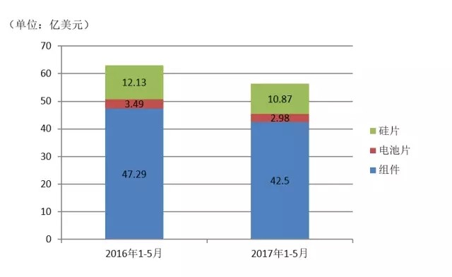 2、光伏產品出口額同比下降,出口量卻同比增加;