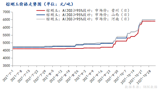 國(guo)(guo)慶節后,國(guo)(guo)內棕(zong)剛(gang)(gang)(gang)玉市(shi)場一路高歌,截止到(dao)10月31日(ri),棕(zong)剛(gang)(gang)(gang)玉市(shi)場五連(lian)漲,河南、山西、貴(gui)州(zhou)(zhou)三大(da)主(zhu)產區棕(zong)剛(gang)(gang)(gang)玉價(jia)格累漲1200-1300元/噸(dun),漲幅高達22.64%和25.49%,其(qi)中貴(gui)州(zhou)(zhou)地(di)區棕(zong)剛(gang)(gang)(gang)玉漲幅高于河南、山西兩地(di)。