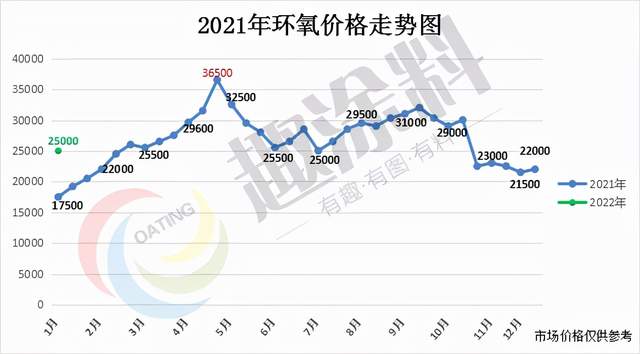 縱觀2021年原材料全年的價格走勢,受大宗商品價格持續上漲、疫情、洪澇災害、臺風和督查等因素的影響,環氧樹脂全年價格呈現“過山車式”跌宕起伏。