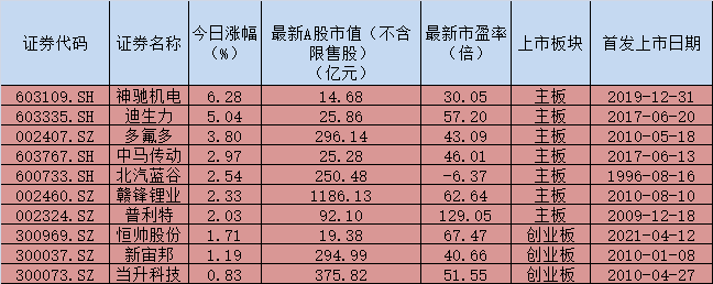 ????此(ci)外(wai),部分(fen)個股(gu)(gu)估值(zhi)有待修復(fu)。通過梳理,一汽(qi)富維、利歐股(gu)(gu)份、中國(guo)重汽(qi)、上汽(qi)集團、廣日股(gu)(gu)份、棲霞建設(she)、南方(fang)軸承、威孚高(gao)科、永安行等10只個股(gu)(gu)最新市(shi)盈率均不足10倍,遠低于新能源(yuan)板(ban)塊43.17倍的整體估值(zhi)。