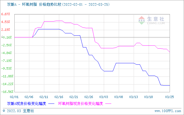 原(yuan)料(liao)端(duan)來看,雙(shuang)酚A先(xian)跌后又小幅(fu)反(fan)彈(dan),周內(nei)最低到15000元/噸,臨近(jin)周末市(shi)場回調(diao)至15800元/噸,主要是(shi)PC端(duan)生產(chan)狀況(kuang)有所改善。另一原(yuan)料(liao)環(huan)氧(yang)氯丙烷(wan)低迷難改。上游走跌且需求端(duan)持(chi)續低迷, 持(chi)貨(huo)商(shang)心態承壓下讓(rang)利(li)出(chu)(chu)貨(huo),另外周內(nei)國內(nei)疫情(qing)加重(zhong),各地(di)(di)物流運輸嚴重(zhong)受阻,買(mai)賣(mai)雙(shuang)方商(shang)談冷清,市(shi)場信心不(bu)(bu)足,環(huan)氧(yang)樹脂(zhi)市(shi)場難有利(li)好支撐,不(bu)(bu)斷走跌下行(xing),截止25日山東地(di)(di)區固體(ti)環(huan)氧(yang)樹脂(zhi)市(shi)場商(shang)談價格在22500-22800元/噸,華東地(di)(di)區液體(ti)環(huan)氧(yang)樹脂(zhi)市(shi)場商(shang)談在25200-25800元/噸桶裝出(chu)(chu)廠。