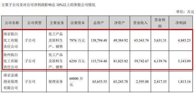 具體來看(kan),子公司南京鈦白化工(gong)有限責任公司上半年實(shi)現(xian)營(ying)業收入6.54億元,實(shi)現(xian)凈利潤4845.23萬元。