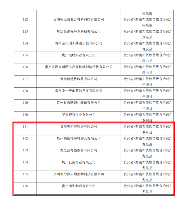摘要 近日,貴州省科學技術廳網站發布“貴州省2023年第四批擬入庫科技型中小企業名單。”龍里多家企業貴州奧爾登家居有限公司、貴州福斯特磨料磨具有限公司、龍里縣粵盛型材有限公司、貴州良濟藥...