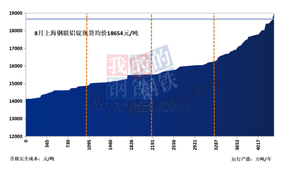 8月電(dian)解鋁行業產(chan)能成本曲線