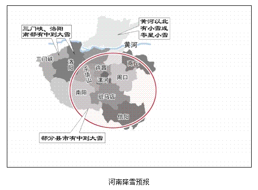 據河南省氣象臺首席預報員王新敏介紹,昨日8時,雪花先在中原南部的信陽等地飄落。雪花覆蓋面迅速擴大,由南向北快速推進。14時,雪花已經覆蓋了許昌以南的大部分地區。16時,黃河以南的區域幾乎都被列入了雪花包圍圈。“到下午兩點鐘,中原南部的信陽一帶降水量已有2毫米,出現了中到大雪。”她說。信陽、駐馬店南部和南陽東部都出現了大到暴雪天氣。昨日,從5時到17時,商城、光山、新縣、固始等我省南部9個區域的降水量都在5毫米以上。昨日17時,省氣象臺發布道路結冰橙色預警信號:預計27日夜里到今天早晨,全省大部分地區出現降雪,路表溫度低于0℃,將出現對交通有較大影響的道路結冰。