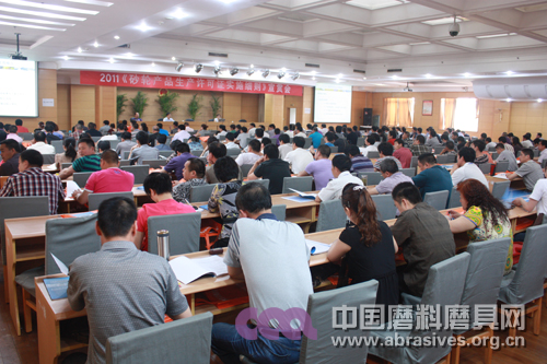 5月19日,2011《砂輪產品生產許可證實施細則》第一期宣貫會在鄭州召開,全國工業產品生產許可證審查中心侯韓芳助理、砂輪產品審查部鐘彥征主任、及來自全國各地的企事業單位專家代表近300人參加了此次會議。