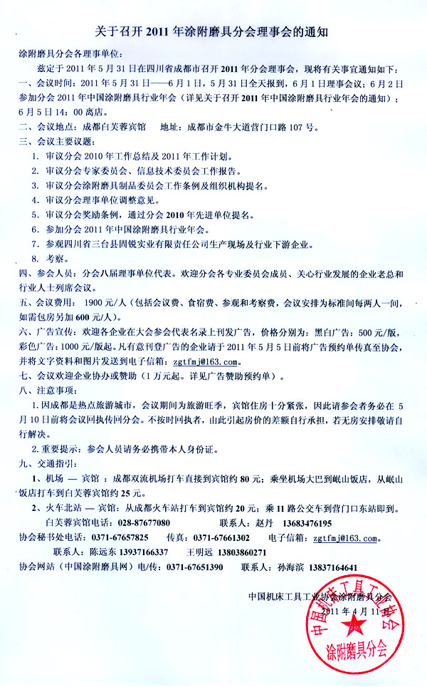 中(zhong)國(guo)(guo)機(ji)床工(gong)具工(gong)業(ye)協(xie)會(hui)(hui)(hui)(hui)(hui)涂(tu)附磨(mo)(mo)具分會(hui)(hui)(hui)(hui)(hui)的(de)前(qian)身(shen)是(shi)中(zhong)國(guo)(guo)涂(tu)附磨(mo)(mo)具行(xing)業(ye)協(xie)會(hui)(hui)(hui)(hui)(hui),成(cheng)立(li)于1984年(nian),是(shi)我國(guo)(guo)最早自發成(cheng)立(li)的(de)行(xing)業(ye)協(xie)會(hui)(hui)(hui)(hui)(hui)之一,1995年(nian)整(zheng)合(he)為中(zhong)國(guo)(guo)機(ji)床工(gong)具工(gong)業(ye)協(xie)會(hui)(hui)(hui)(hui)(hui)下的(de)一個分會(hui)(hui)(hui)(hui)(hui),是(shi)經(jing)中(zhong)華人(ren)民(min)共和(he)國(guo)(guo)民(min)政部(bu)批(pi)準,具有社會(hui)(hui)(hui)(hui)(hui)團體(ti)法人(ren)資格的(de)全國(guo)(guo)性社會(hui)(hui)(hui)(hui)(hui)團體(ti)。擁有包(bao)括涂(tu)附磨(mo)(mo)具和(he)涂(tu)附磨(mo)(mo)具制(zhi)品,及相關磨(mo)(mo)料(liao)、紡(fang)織、造紙、粘結劑、設(she)備制(zhi)造、經(jing)營銷售及應用(yong)企業(ye)、科研(yan)單(dan)位和(he)高等(deng)院校(xiao)會(hui)(hui)(hui)(hui)(hui)員數百家(jia)。協(xie)會(hui)(hui)(hui)(hui)(hui)最高權力(li)機(ji)構是(shi)會(hui)(hui)(hui)(hui)(hui)員代表大會(hui)(hui)(hui)(hui)(hui),大會(hui)(hui)(hui)(hui)(hui)閉會(hui)(hui)(hui)(hui)(hui)期間由理(li)事(shi)會(hui)(hui)(hui)(hui)(hui)負責,理(li)事(shi)會(hui)(hui)(hui)(hui)(hui)由理(li)事(shi)長(chang)、副理(li)事(shi)長(chang)、常(chang)務理(li)事(shi)、理(li)事(shi)和(he)秘書長(chang)組成(cheng)。秘書處是(shi)協(xie)會(hui)(hui)(hui)(hui)(hui)的(de)常(chang)設(she)機(ji)構,負責分會(hui)(hui)(hui)(hui)(hui)和(he)理(li)事(shi)會(hui)(hui)(hui)(hui)(hui)的(de)日(ri)常(chang)工(gong)作,設(she)在河南(nan)省鄭州(zhou)市。