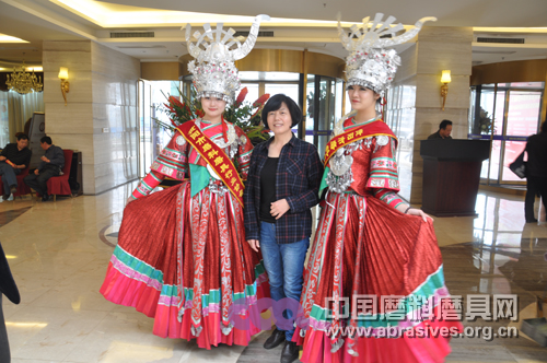 代表與少數民族服飾禮儀小姐合影
