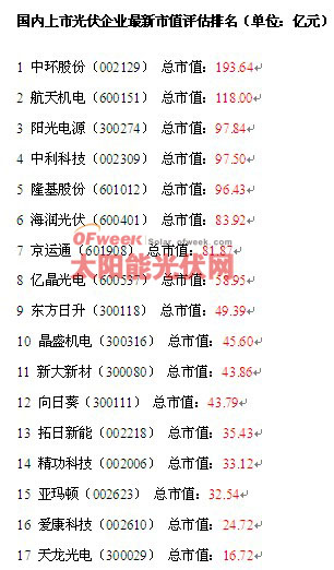 為把握光伏產業總體大局,OFweek太陽能光伏網特為網友們整理成章,盡覽國內上市光伏企業市值最新評估排名情況(圖),并附企業2013年三季度財報及經營情況。