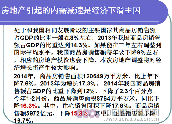 【導讀】2015年春季全國磨料磨具行業信息交流暨第六十一屆中國剛玉碳化硅交易26日上午在安徽合肥召開。國內著名經濟學家、國家信息中心首席經濟學家兼預測部主任、中國人民大學經濟系教授范劍平先生做了“兩會經濟政策解讀和2015年新常態下經濟走勢”的報告。
