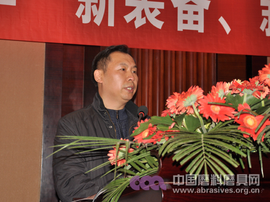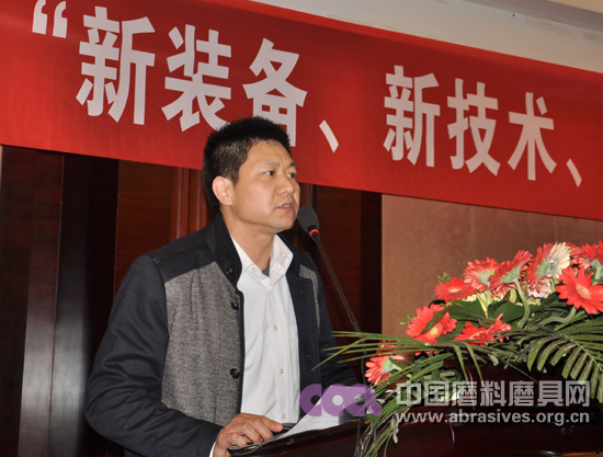 四家企業代表分別在會上作了精彩的推介報告,分別是:日照市莒航自動化設備有限公司李永民董事長所作的“砂輪油石自動成型設備工藝的新動態”、淄博華泓機械制造有限公司董振喜主管設計師作的“幾種新型砂輪加工設備的特點”、江蘇中科機器人科技有限公司孫紅副總經理介紹的“全自動配料技術在磨料磨具行業的應用”和江蘇九鼎新材料股份有限公司曹正兵總工程師作的“九鼎高強砂輪網片性能闡述”。