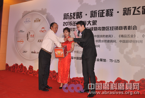 中國磨料磨具網、中國涂附磨具網、中國超硬材料網常務副總石超為大象優秀經銷商頒獎