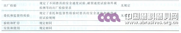 由于目前尚無關于固結磨具安全要求方面的國際標準,故國家標準GB 2494修訂時無國際標準可依。新修訂的國家標準GB 2494—2014《固結磨具 安全要求》是在借鑒歐美標準的基礎上,以歐洲標準EN 12413《固結磨具 安全要求》的技術體系為參考,結合中國的行業實際情況和技術水平而確定了相關的技術內容。