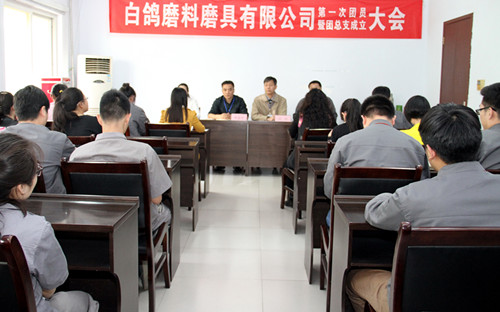 磨料磨具有限公司第一次團員大會暨團總支成立大會。白鴿公司黨委副書記、紀委書記劉岸、白鴿公司常務副總經理李超杰、國機精工團委負責人鄭永等領導出席會議。白鴿公司32名團員參加了會議。