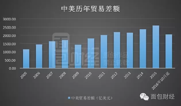 據海關總署數據:截至今年10月底,雖然與去年同期相比下降5.17%,但金額仍然高達2071億美元。下圖為面包財經根據海關總署繪制的中美貿易差額示意圖:
