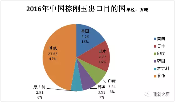 來自海關方面的數據顯示,2016年全年中國累計出口棕剛玉49.99萬噸,同比減少了3.0%。累計出口金額3.15億美元,同比下降12.3%。其中第一季度出口10.95萬噸,第二季度出口13.18萬噸,第三季度出口13.32萬噸,第四季度出口12.54萬噸。這是近五年來中國棕剛玉出口量首次在50萬噸以下,可以說,2016年中國棕剛玉出口市場十分低迷。