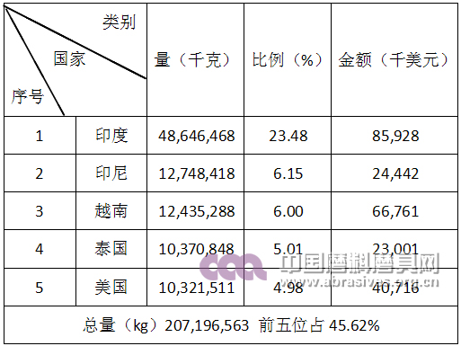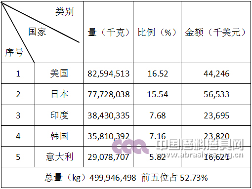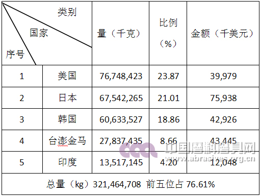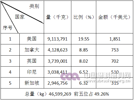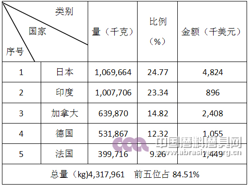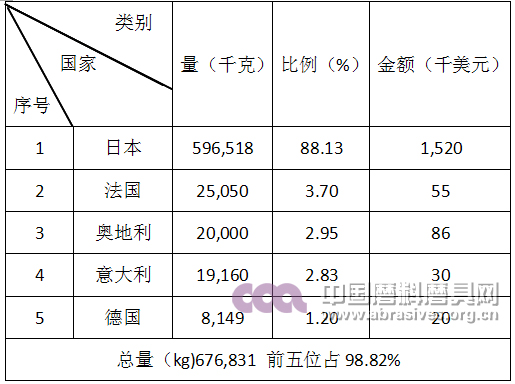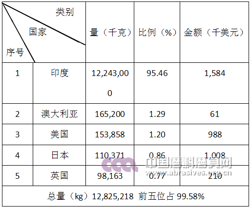 棕剛玉產品出口前五名國家和地區