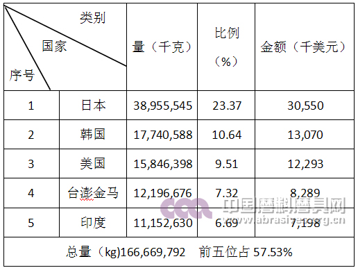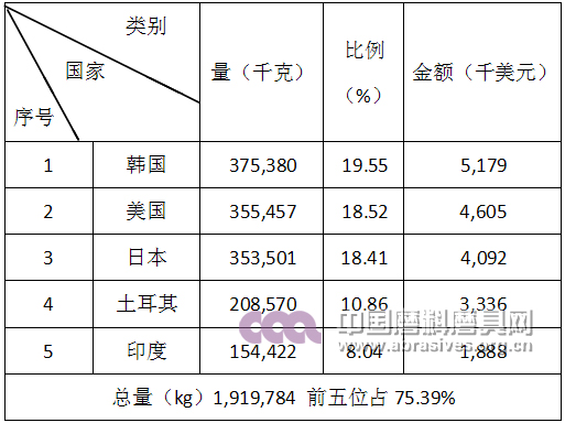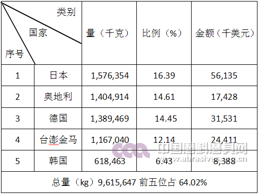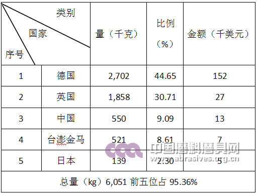 磨具產品進口前五名國家和地區