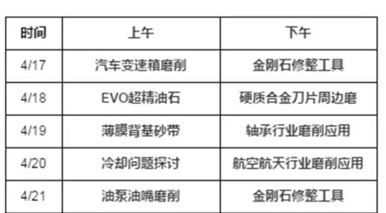 圣戈班的現場小型研討會一直持續到4月21日,有興趣的親歡迎到圣戈班展臺W1-102聆聽并與資深專家面對面溝通、探討磨削問題~
