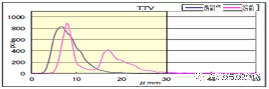 ④產品質量提升。金剛線切割減少了加工損傷層(deteriorated layer),而且精度保持穩定,產生 TTV小(總厚度變化,硅片表面特定測量點的最大值和最小值之差)。