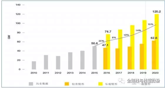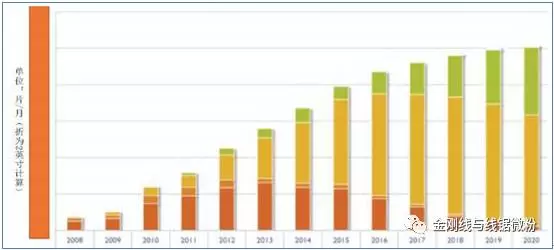 第一,光伏行業的增長狀況直接影響金剛線的市場規模。據行業經驗估計,每片硅片(約4W)需耗用電鍍金剛線約 1.5米。