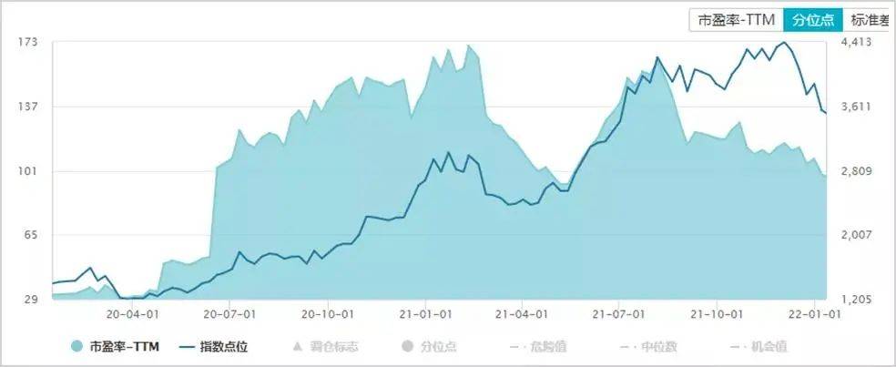 2021年,中證(zheng)新能源(yuan)汽車指(zhi)(zhi)數一(yi)路(lu)攀(pan)升,市(shi)盈率(TTM)最高沖到了170以(yi)上。從上圖可(ke)以(yi)明顯(xian)的(de)發現,自去年8月份之后,盡管指(zhi)(zhi)數依然上行(xing),但估(gu)值水平(ping)已經(jing)單邊下行(xing)。