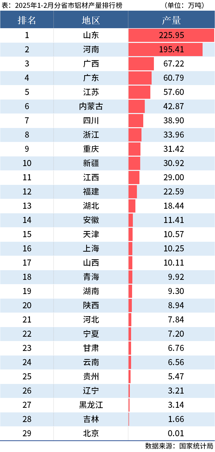 國家統(tong)計局(ju)數據(ju)顯示,2025年(nian)1-2月鋁材累(lei)計產量(liang)967.4萬(wan)噸(dun),同比增長3.6%。