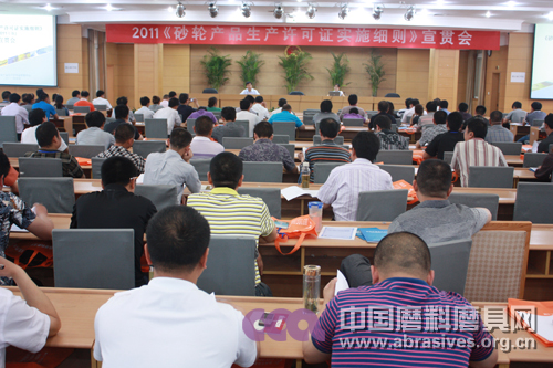 5月19日,2011《砂輪產品生產許可證實施細則》第一期宣貫會在鄭州召開,全國工業產品生產許可證審查中心侯韓芳助理、砂輪產品審查部鐘彥征主任、及來自全國各地的企事業單位專家代表近300人參加了此次會議。