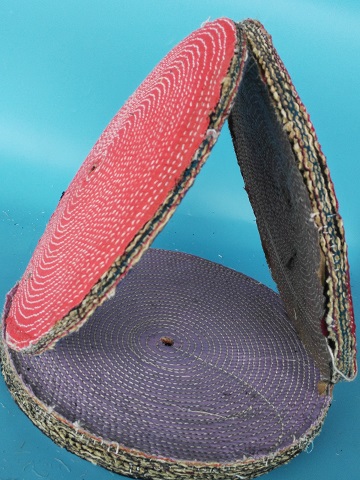 產品尺寸Φ300*10*10(外徑*厚度*內孔)的常規麻輪,此款產品專業用于鋅合金,鋁合金,銅件等五金產品的拋光,因此硬度比較軟,是由國產麻,5層麻5層棉布車軋而成,50片一捆,用纖維袋包裝。
